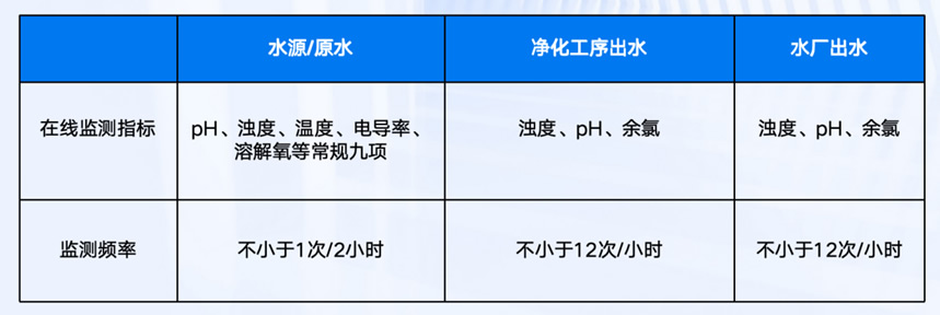 參考《CJJ/T 271-2017城鎮供水水質在線監測技術標準》,各關鍵環節監測指標要求: